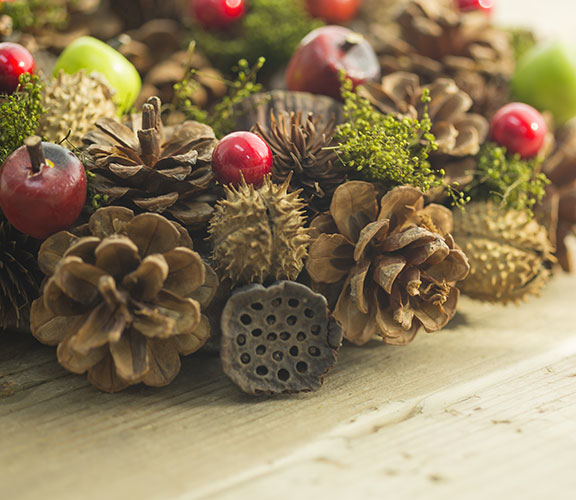 Addobbiamo la casa con ghirlande o composizioni ornamentali fatte con rami, bacche, foglie secche o quanto riusciamo a procurarci, dando libero sfogo alla fantasia.